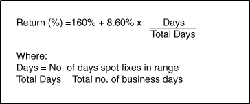 The return on the investment (quoted on an Act/360 basis) in this example will be defined by the following formula: