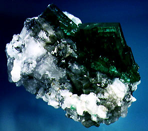 El Silencio- Very unusual gemmy dark emerald crystal with multiple tabular terminations from the El Silencio corte in Coscuez. John Barlow collection. Photo by Jeff Scovil ©1993