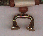 Ivory, gold & semi-precious stones Narizera is solid gold Piece Dimensions: 19mm long, 12mm high, 2mm thick at bar & 5 mm at end bells See close-up below Ref #899 |